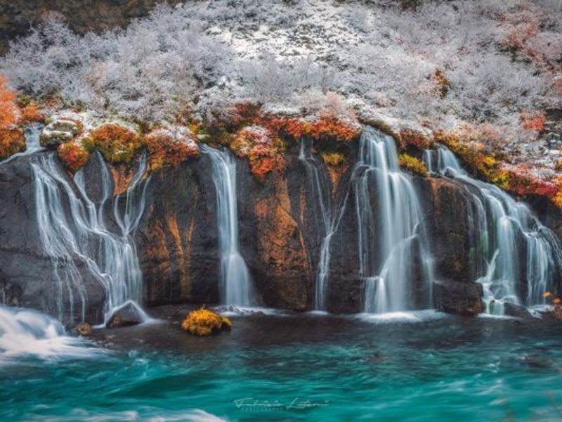 Leave Reykjavík behind as you head north toward Akureyri, the capital of North Iceland. This scenic drive takes you through diverse landscapes, starting with the beautiful Borgarfjörður region. Make sure to stop at the beautiful Hraunfossar waterfalls, where water flows from beneath a lava field directly into the river below, creating a series of delicate cascades. The interplay of water against black lava creates a memorable sight. Continue through Skagafjörður, Iceland's renowned horse-breeding region, where you'll spot herds of beautiful Icelandic horses grazing in the fields. These sturdy, friendly animals are a quintessential part of Icelandic culture. As you wind through mountain passes and alongside fjords, you'll understand why this route is considered one of Iceland's most scenic drives. Arrive in the Akureyri area, where you'll spend the night in the charming capital of North Iceland or the surrounding countryside.